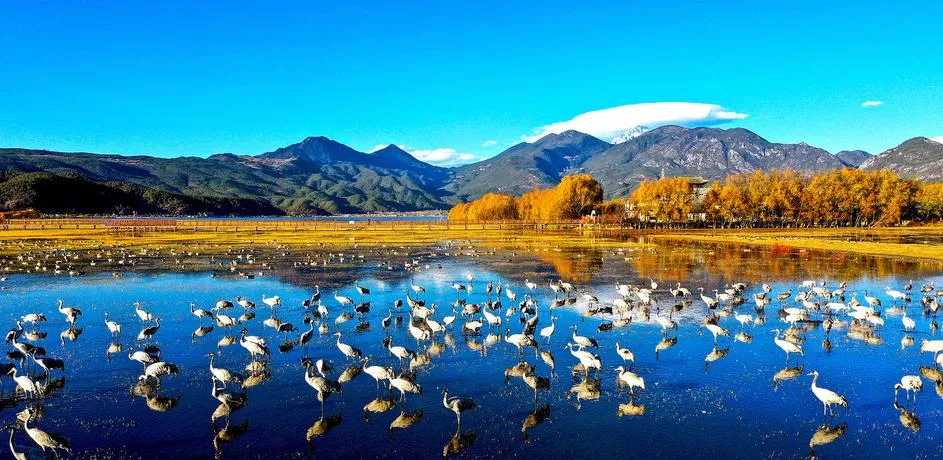 拉市海严格来说不在玉龙县境内,但离得近,冬天会有大量候鸟迁徙到这,黑颈鹤、斑头雁、赤麻鸭,密密麻麻。当地人现在不打鱼了,因为发现保护湿地比打鱼赚得多,这个转变不是政府强制的,是村民自己算明白的账,这种对生态价值的认知在内地很多地方还没建立起来,但在拉市海已经变成了共识。