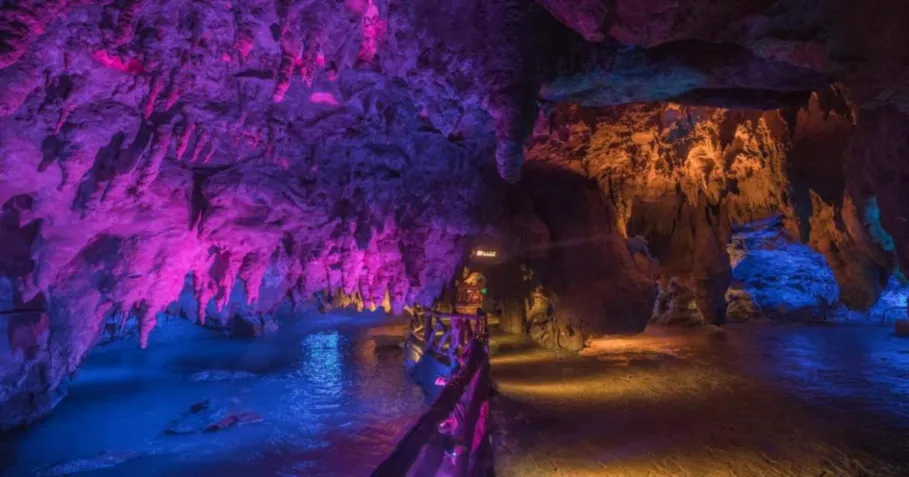 鲁溪洞是国家4A级旅游景区,由江南地下水晶宫之称的天然溶洞、惊险刺激的高空玻璃滑道漂流等组成。溶洞中的亿年硅化木是研究中生代地质历史时期的古地理、古气候演化的重要依据,又被称为地质博物馆。