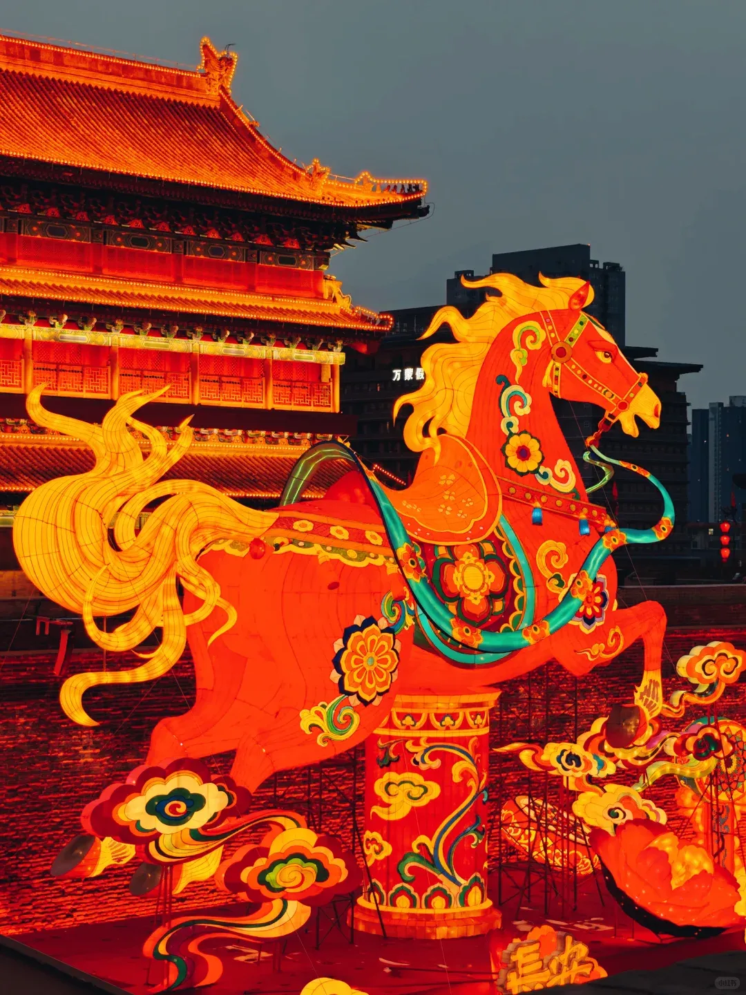 打造出“跃马迎春来”“翼马行空”等特色花灯,白天看古韵十足,晚上灯火璀璨,氛围感直接拉满。