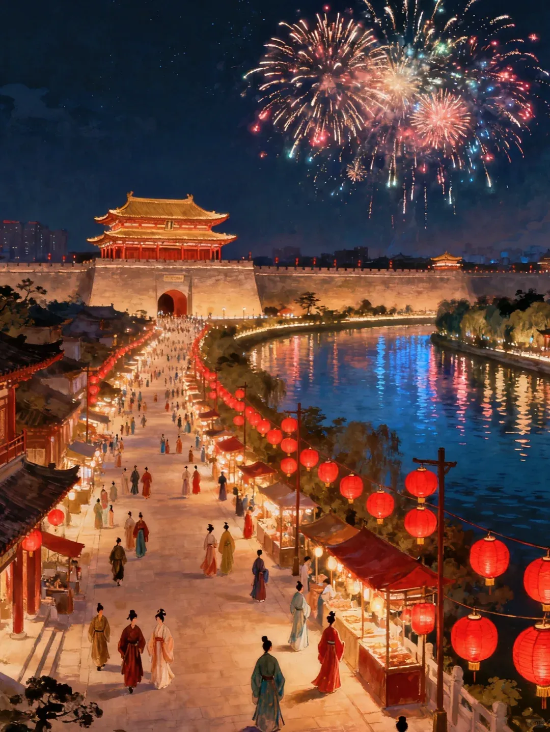 核心观赏区:含光门、勿幕门、永宁门、文昌门等6个城门,集中了重磅灯组和核心活动,登城首选永宁门,直达灯海核心;