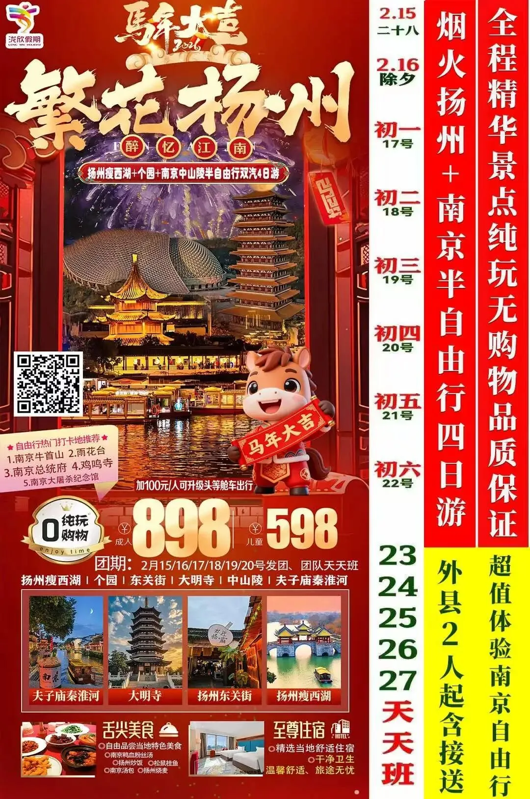 您现在的位置是:首页 > 国内旅游目的推荐 > 正文 国内旅游目的推荐 扬州旅游攻略吃住行(保姆级) admin2026年02月13日 07:07:02国内旅游目的推荐7 扬州旅游攻略吃住行(保姆级)扬州旅游攻略🔥吃住行(保姆级)#扬州美食攻略 #扬州旅游必吃 #淮扬菜推荐 #扬州小吃打卡 #扬州早茶指南线路推荐 转载请说明来源于"旅荐网",部分内容转载自网络,如有侵权请联系qlwl@foxmail.com删除 本文地址:https://www.15386.cn/post/104247.html 上一篇 《旅游投诉处理办法》3月15日正式施行,游客投诉有门路 下一篇 全国旅标委《入境研学旅游服务要求》公开征求意见 相关文章 做了15年旅游规划,我今天才敢说:很多项目是怎么做死的 #峨眉山金顶佛像 #峨眉山旅行攻略 彩云之南——云南旅行攻略 乡村旅游天花板——婺源超全旅游攻略,含门票、景点路线、交通、住宿等 湖州周末三天两夜旅游攻略 台州临海旅游攻略!两天一夜舒适版! 【重点关注】海南省旅游和文化广电体育厅关于举办2026年研学课程设计及线路策划培训班的通知 关于开展中国旅游协会2026年度“最美小镇”评定工作的通知 招生简章丨2026年中央电教馆《研学旅游指导师》技能培训认证项目正式启动! 2026宿迁马拉松即将开跑!选手旅游指南别错过 发表评论 取消回复 评论列表 这篇文章还没有收到评论,赶紧来抢沙发吧~