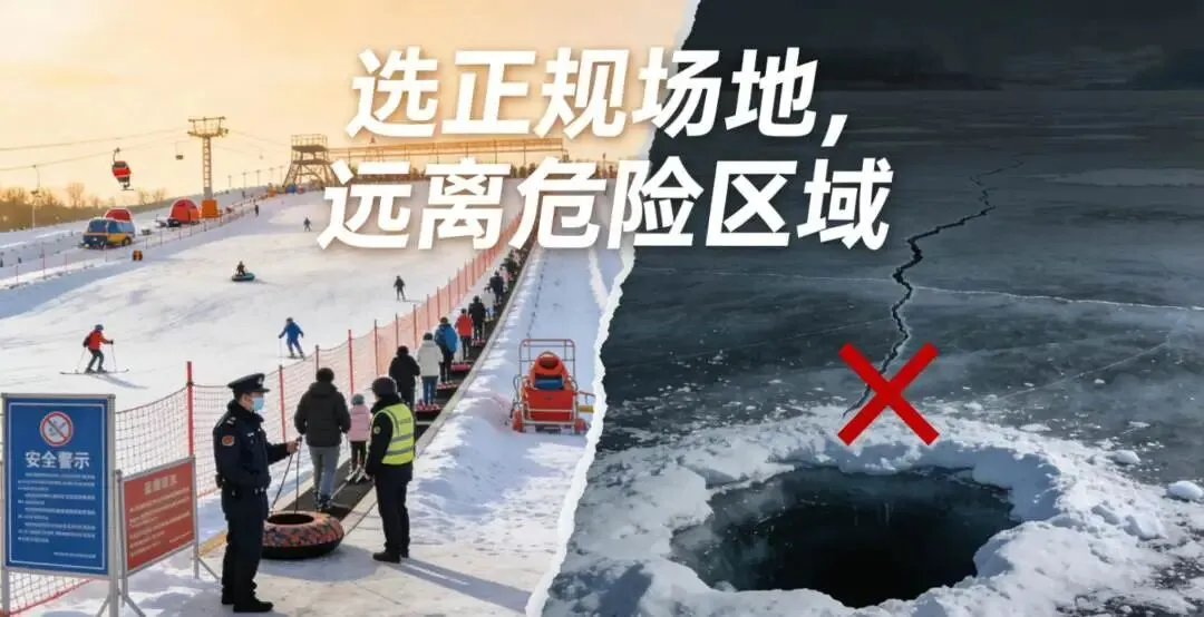 请大家选择有经营资质、专人管理、配套安全设施的正规冰雪景区、乐园体验项目。入园后主动阅读游客须知和安全警示,严格遵守景区管理规定,在工作人员指导下参与滑雪、冰车、雪圈等各类冰雪项目,不擅自进入封闭或警示区域。