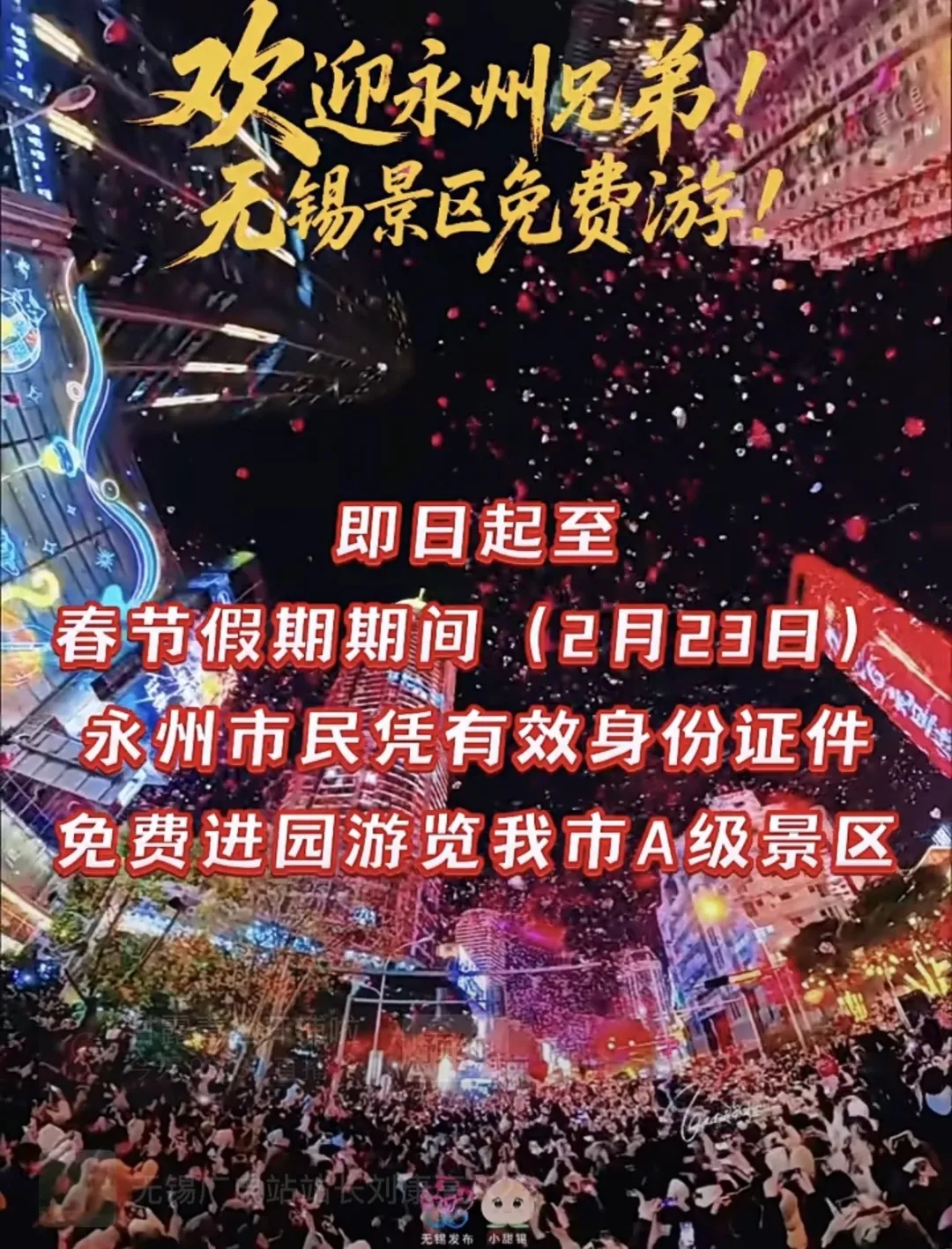 无锡A级景区对永州人免票!
