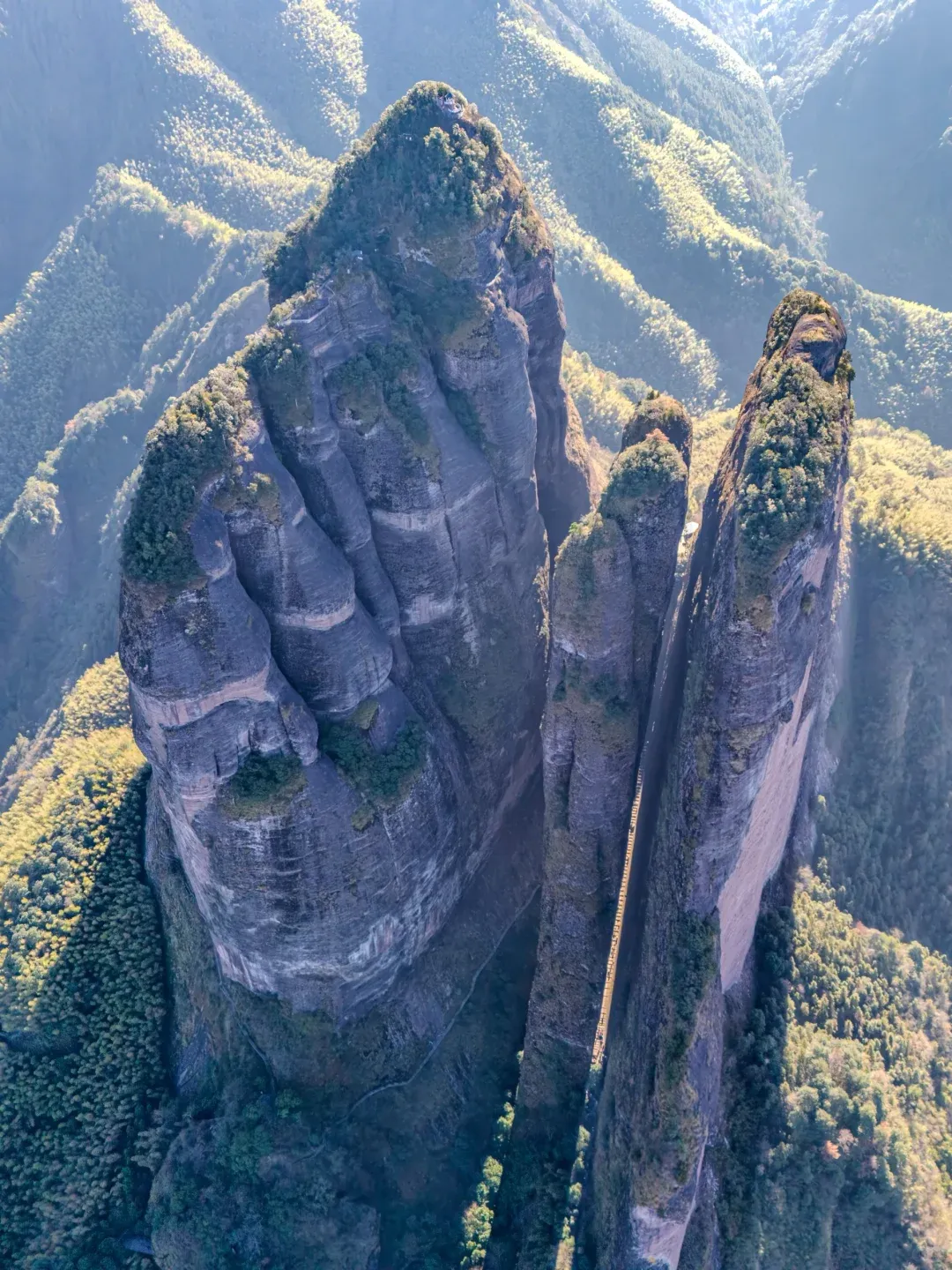 江郎山的三片巨石拔地而起,远看像三根手指戳破天际。走在一线天的窄缝里,两侧石壁高得让人窒息——那种压迫感和震撼感,绝了。