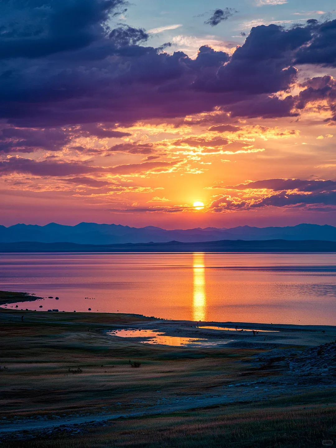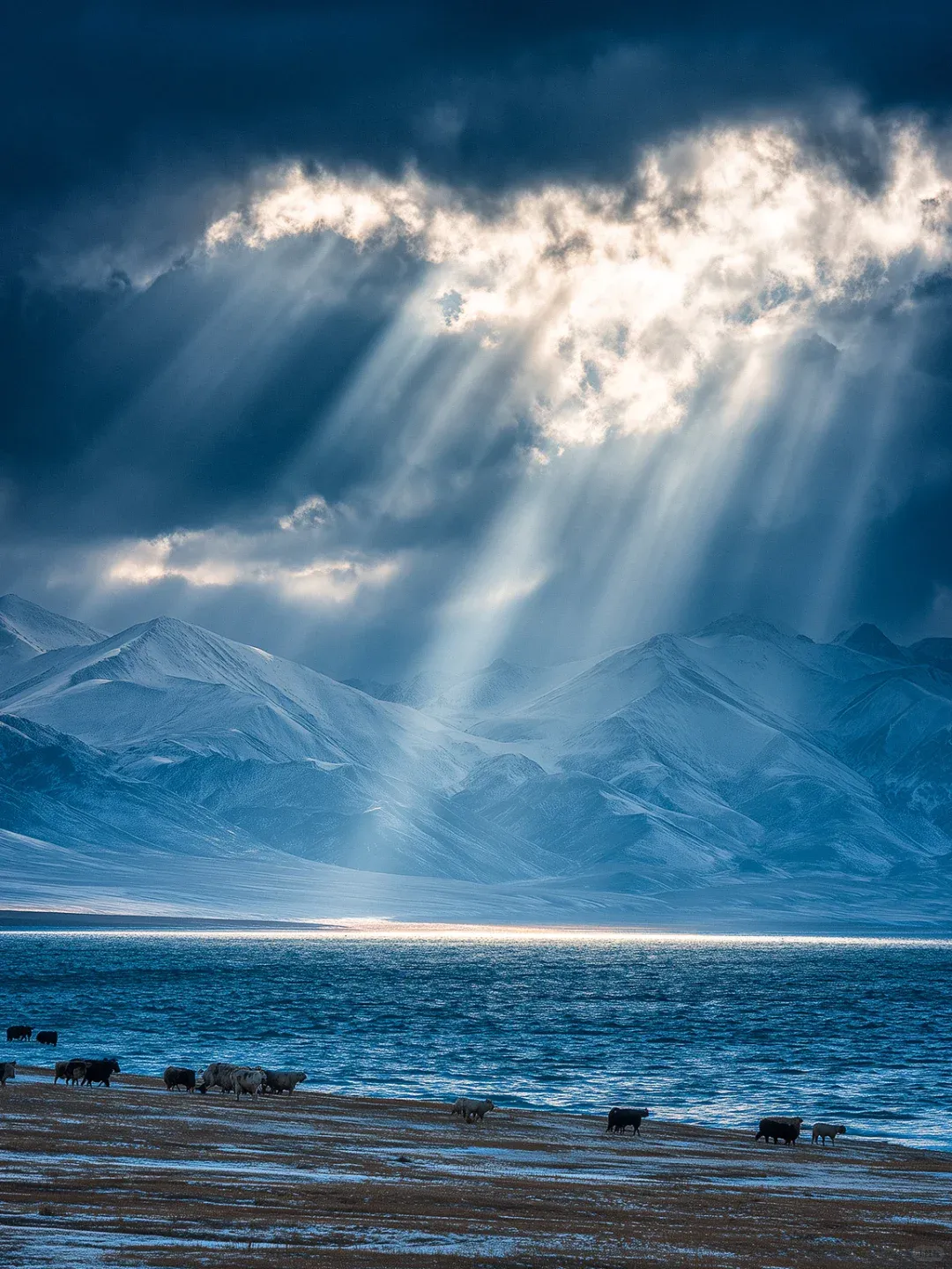 赛里木湖被叫做"大西洋最后一滴眼泪"。夏天是蓝得不真实的高山湖泊,冬天呢?
