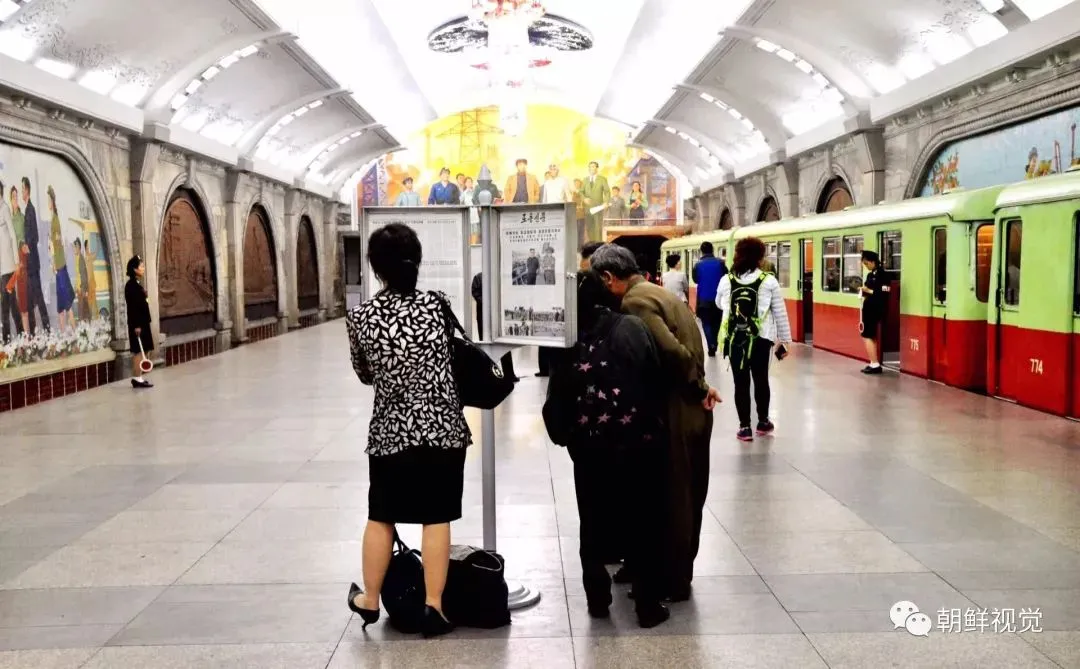 当我们进了地铁车厢,里面的朝鲜学生主动给我们让座。可以看出,朝鲜人对中国游客还是很热情的。朝鲜百姓的表情都很严肃,见到游客显得比较拘谨,但是朝鲜百姓很喜欢学习,在地铁车厢内,经常能见到看书的百姓。