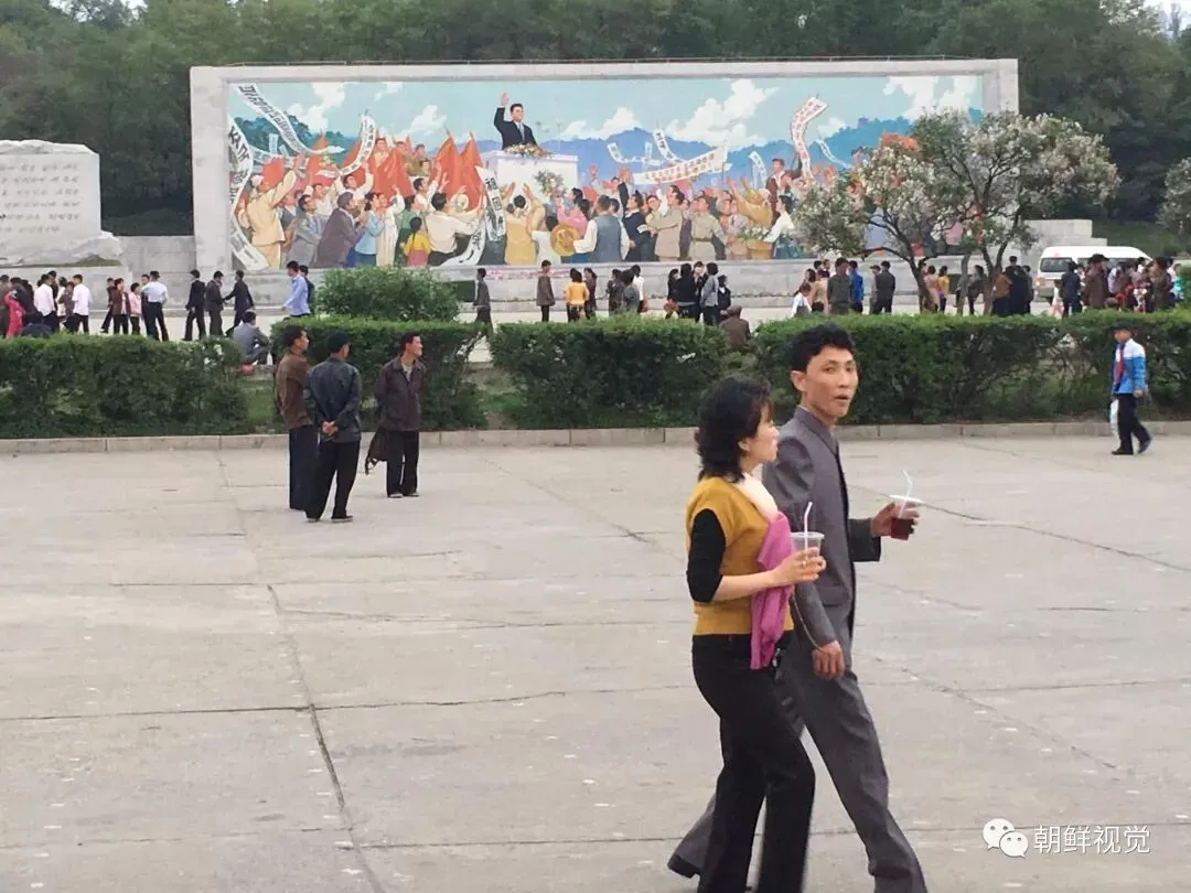 朝鲜百姓走路时,胳膊摆动的幅度特别大,行色匆匆的样子。朝鲜人喜欢蹲在地上聊天,他们在野外聚餐时,也喜欢蹲在地上。我感觉蹲着是朝鲜的一种文化了。在平壤大街上,偶尔能见到三三两两的学生,他们衣着光鲜,洋溢着青春的气息,让人感觉到青春的美好。