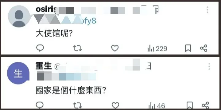 更有甚者,将心中的愤慨发泄到祖国的头上,质问——“(中国)大使馆在干什么?!”“这个时候祖国哪里去了?!”