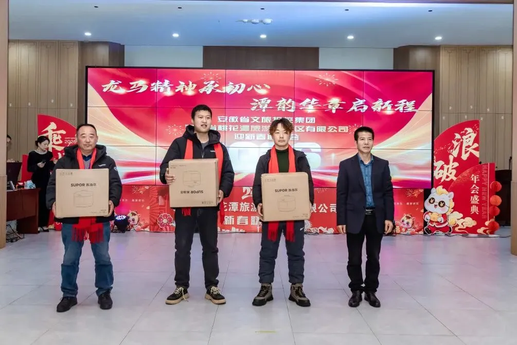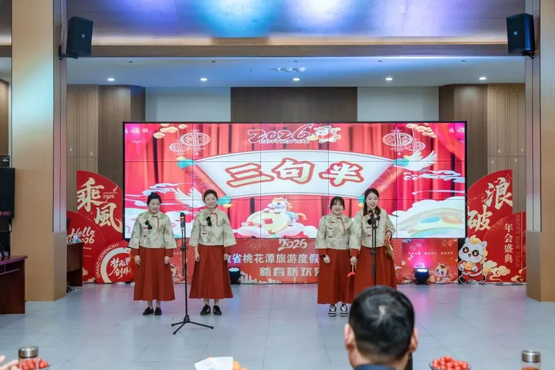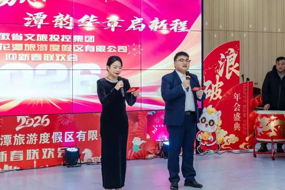辞旧迎新岁,潭韵启新章。2月6日,安徽省文旅投控集团旗下桃花潭景区内暖意融融、欢声阵阵,“龙马精神承初心・潭韵华章启新程”2026年迎新春联欢会温情上演,景区全体员工齐聚一堂,共贺新春、共话未来。
