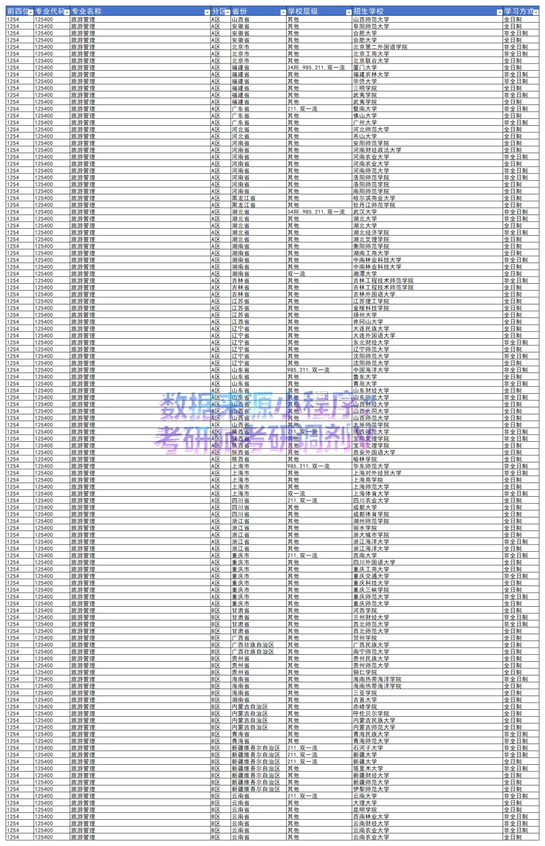 2025年1254旅游管理专硕调剂缺额院校汇总:104所院校覆盖29省,这份上岸攻略请收好!