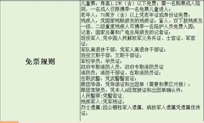 (1.2米以上/18岁以下学生,全日制在校大学生,60周岁-69周岁)