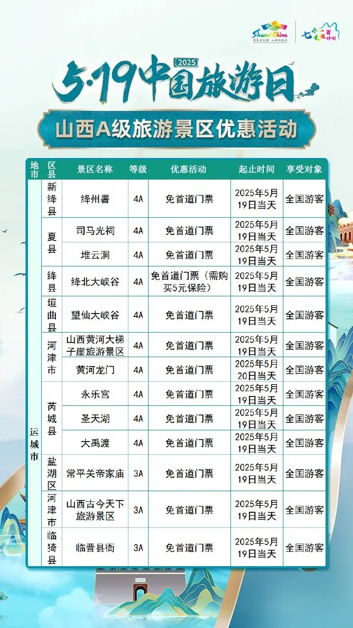 5·19中国旅游日即将来临,山西各大景区推出免门票、半价优惠等活动,具体如下↓↓↓