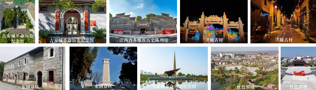 线路安排:吉州区(吉安城革命历史纪念馆、江西省苏维埃历史陈列馆)——青原区(渼陂古村、东固景区)——泰和县(马家洲革命历史纪念馆)——万安县(红色罗塘)