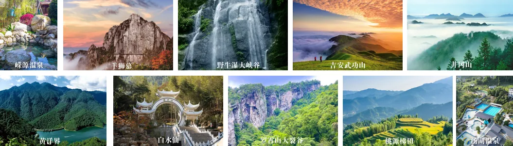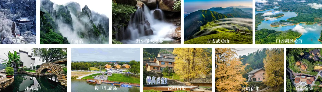 线路安排:安福县(羊狮慕景区、野牛瀑大峡谷、武功山金顶景区、箕峰)——青原区(白云湖匠心谷景区)——泰和县(蜀口生态岛)——万安县(红豆杉养生谷、高岭宿集)
