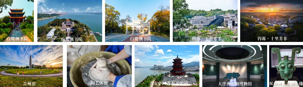 线路安排:吉州区(白鹭洲书院、钓源·十里芳菲)——吉安县(吉州窑)——吉水县(吉安中国进士文化园)——新干县(大洋洲青铜博物馆)