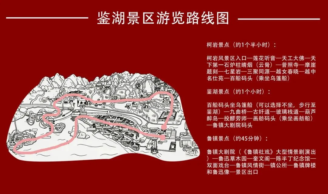 景区游玩也可反向游玩,与这一条路线实现错峰,可有效避免排长队,于鲁镇大剧院码头坐画舫船进入“鉴湖景点”哦!