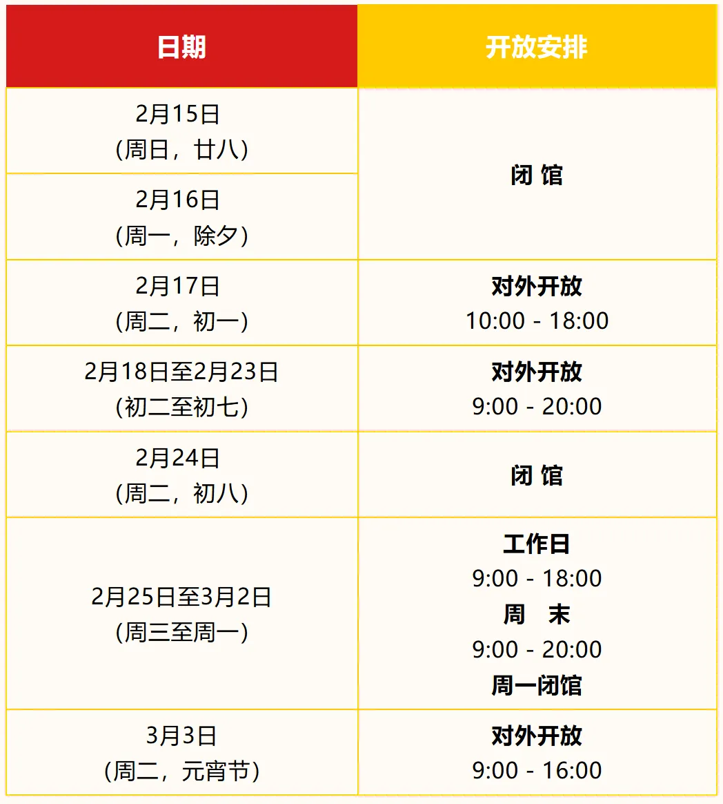 🔶春节开放时间