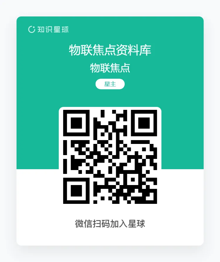 文档链接将分享到物联焦点资料库知识星球扫描下面二维码即可查阅!