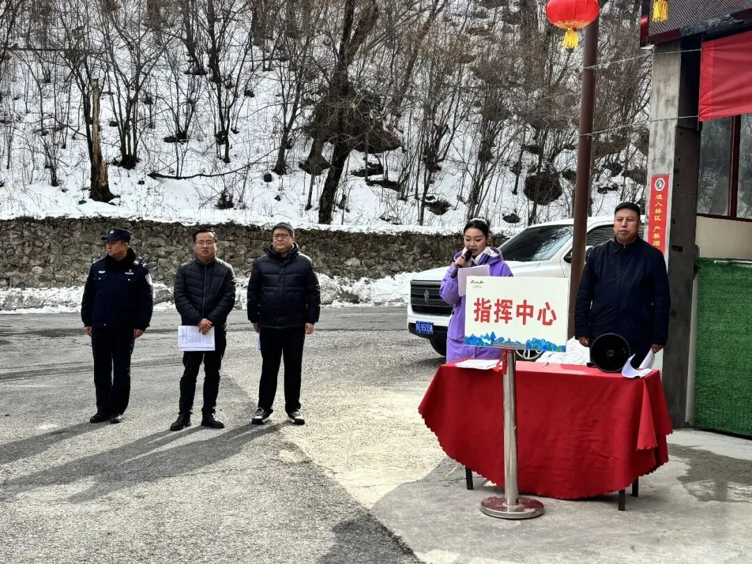 为筑牢春节旅游安全防线,有效应对高山区极端天气风险,提升多部门协同应急处置能力,2月12日,太白山景区在红桦坪开展极端天气应急演练。太白山旅游区管委会、县应急管理局、县交通局等相关单位现场观摩指导,景区运营公司全员参与演练,涵盖太白山国家森林公园、游客服务中心、宣传营销中心、秦岭股份公司等单位。