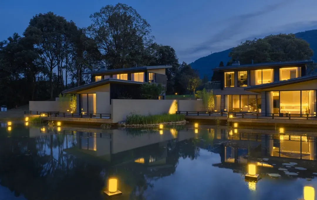 依山而建,借林而居的楼台、亭阁、庭院、小桥流水,