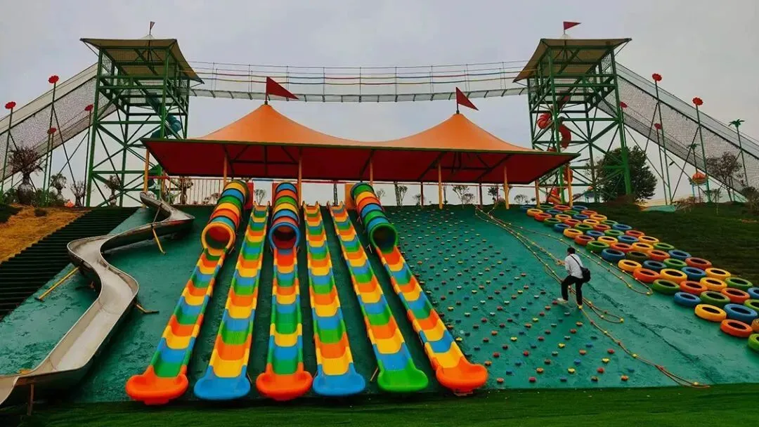 坑爹小火车、勇攀高峰滑世界、秋千广场儿童溜索、太空球吊桥组合、彩虹滑道、网红蹦蹦云等项目,各个年龄段的儿童,都能在此找到属于自己的乐趣。