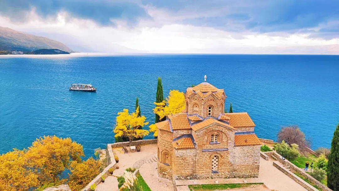第五天:抵达世界自然和文化双遗产的奥赫里德湖,沿湖岸公路前往北马其顿。入境后游览奥赫里德湖畔的圣瑙姆(Saint Naum)和奥赫里德(Ohrid)。