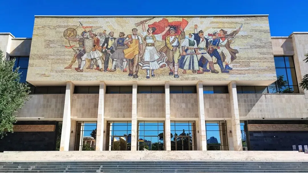 (地拉那斯坎德培广场上标志性的马赛克)