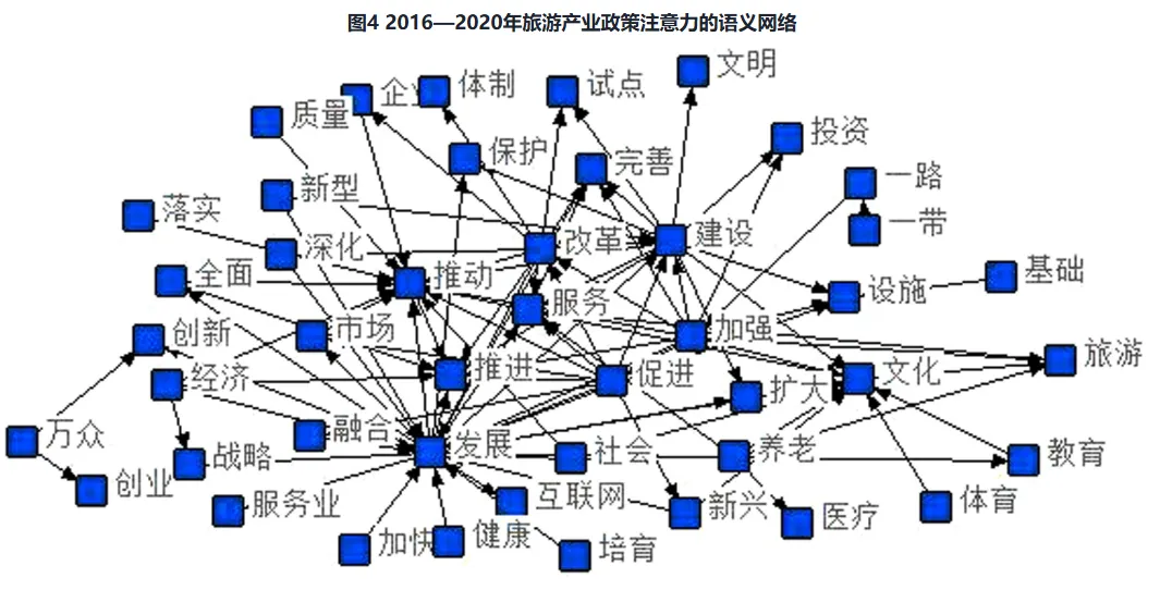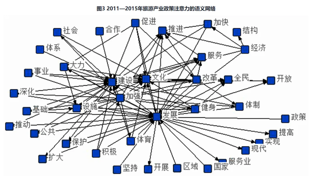 旅游产业政策注意力也呈现出一定的聚焦,从最初的外事接待到“十五”时期的文化产业发展,再到后来的体育旅游、乡村旅游、休闲旅游、文化旅游等,旅游产业政策与文化建设息息相关;