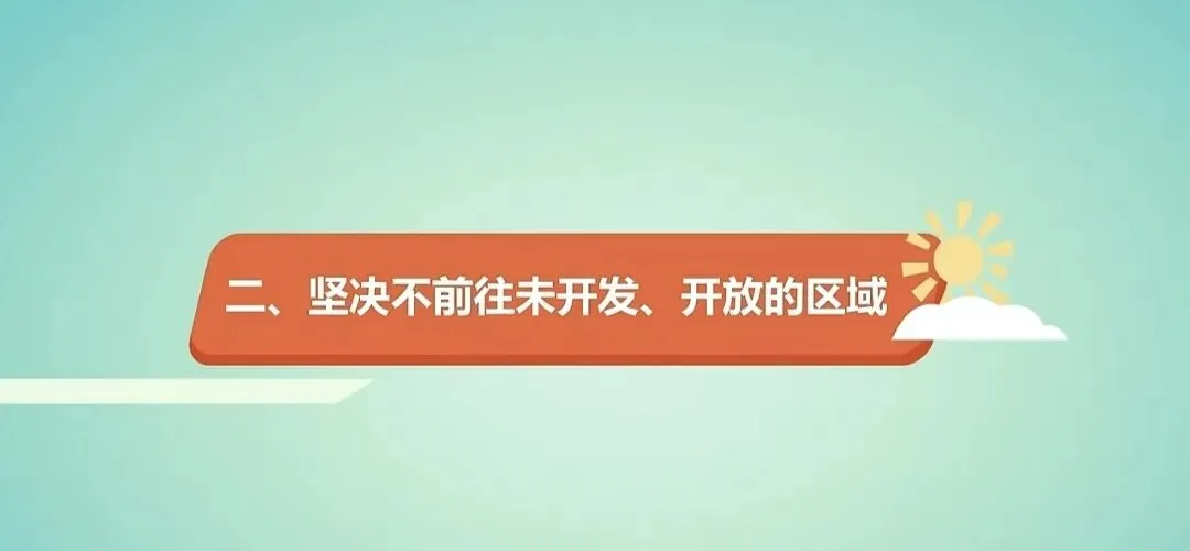 坚决不前往未开发、开放的区域。团队游客按照旅行社规划好的路线走,千万不要私自离团,前往尚未开发、缺乏安全保障的地方,也不要去景区内没有开放的区域;自行出游的小伙伴,千万不要进未经批准经营的“野景点”“网红打卡地”,猎奇下往往影藏着不可预测的危险。甚至危险生命安全。