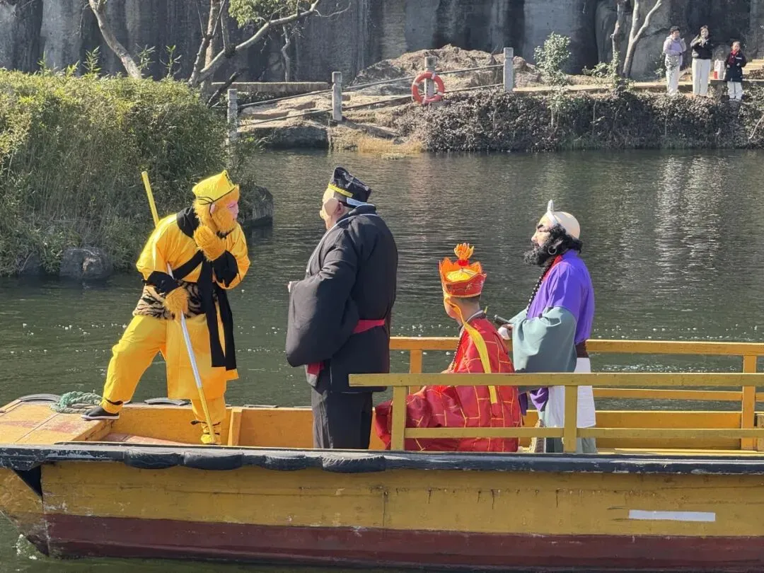景区特别推出《重回女儿国》沉浸式情景演绎,再现唐僧师徒渡河、女儿国国王深情挽留等名场面,360°环绕式舞台+摇橹船动态巡游,让您不仅是观众,更是故事里的“西游人”!