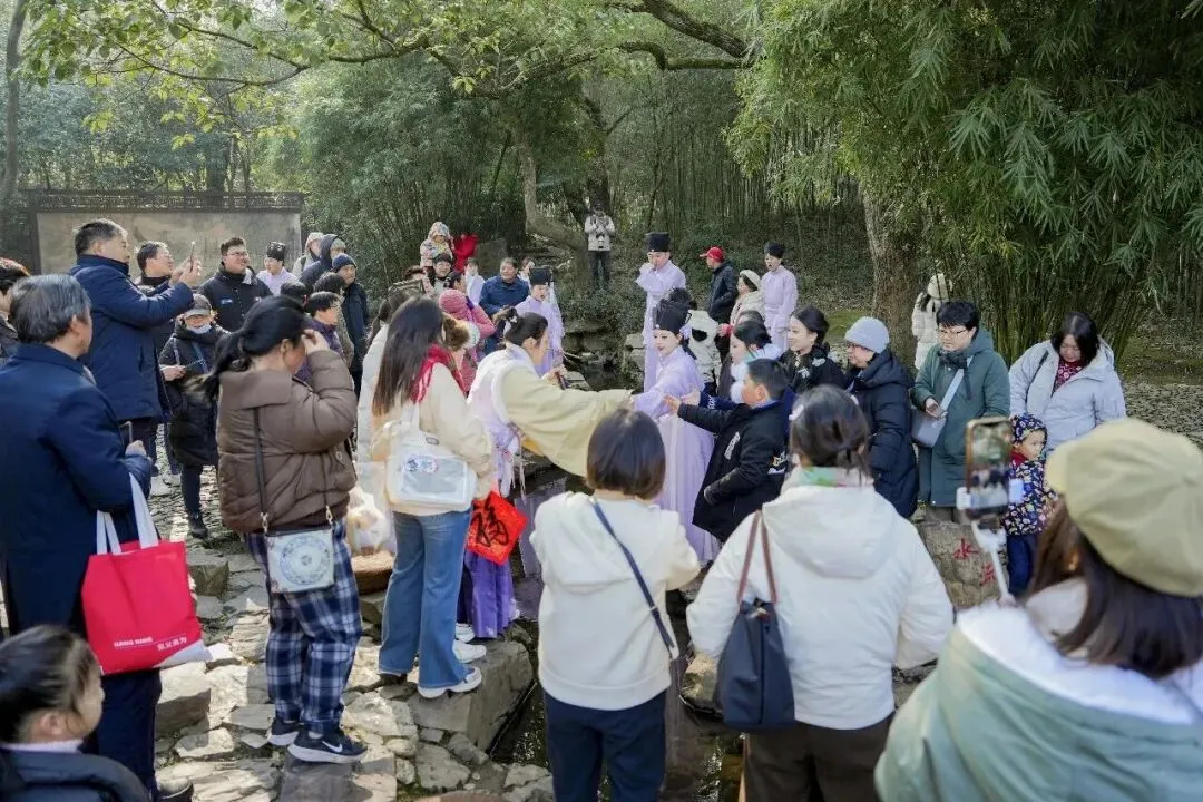 春节期间,沈园将变身为一座"活着的宋代园林"!NPC角色身着宋制服饰,在园中巡游互动,快来和他们互动吧~