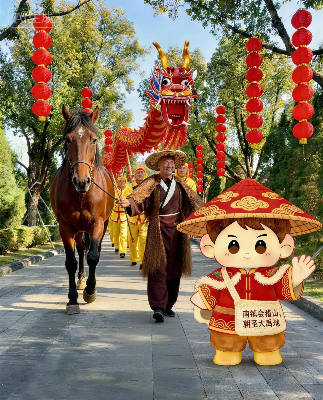 骏马昂首开道 +「大禹」「小禹」NPC + 舞龙队······集体现身,沿景区主干道开启巡游送福模式!
