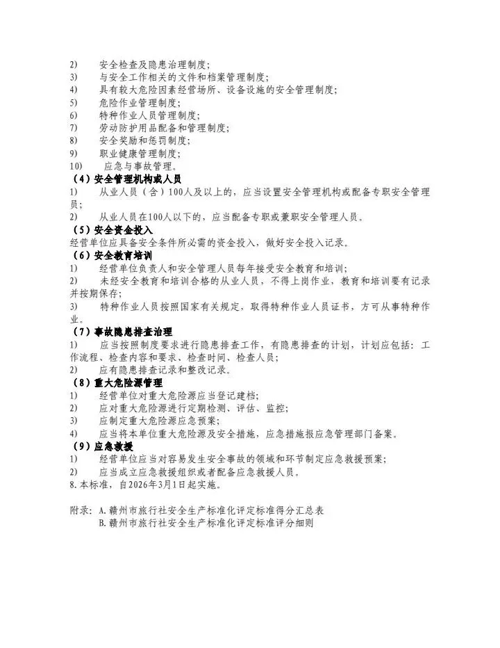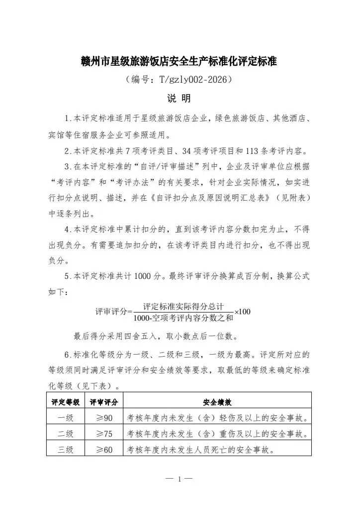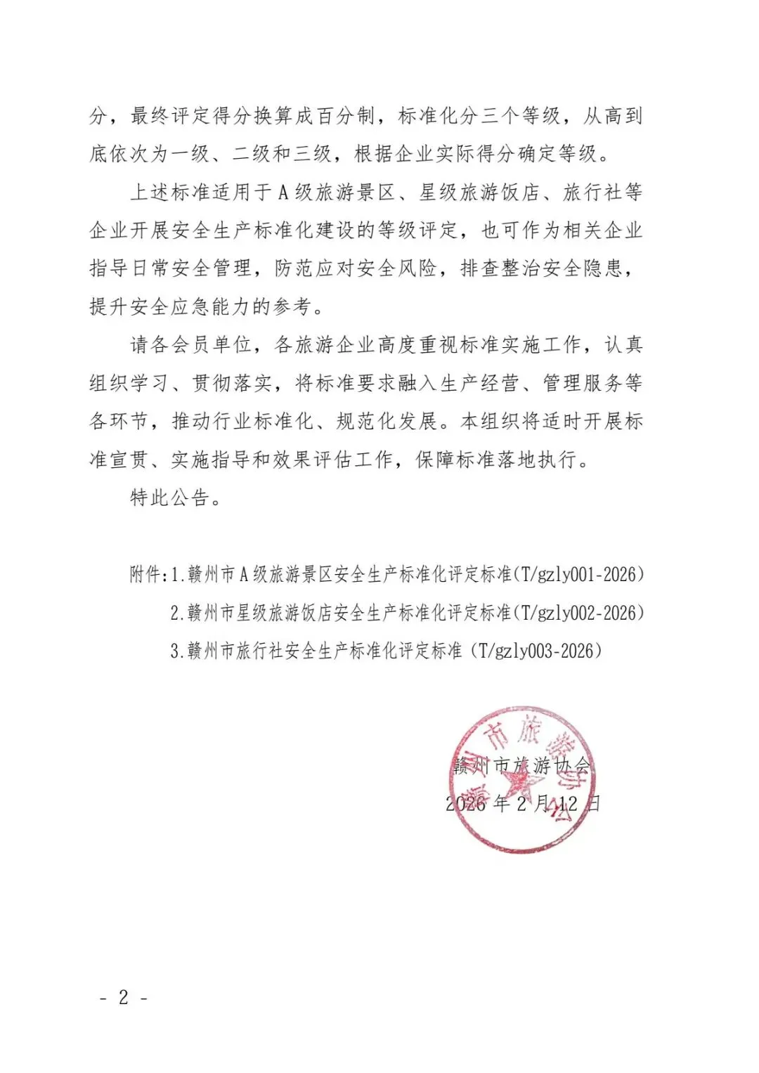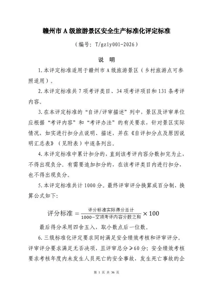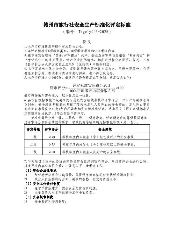 赣州市旅游协会关于发布《赣州市A级旅游景区安全生产标准化评定标准》等三项团体标准的公告