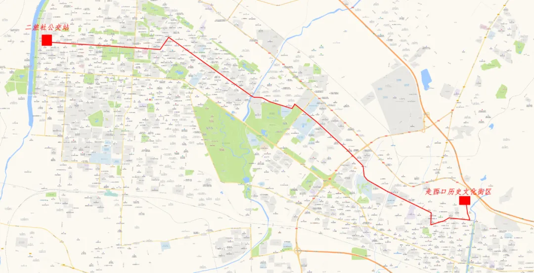 二旅社公交站—团结大街—富强路—文化路—青山路—内环路—西门大街—东门大街—福徵路—走西口历史文化街区