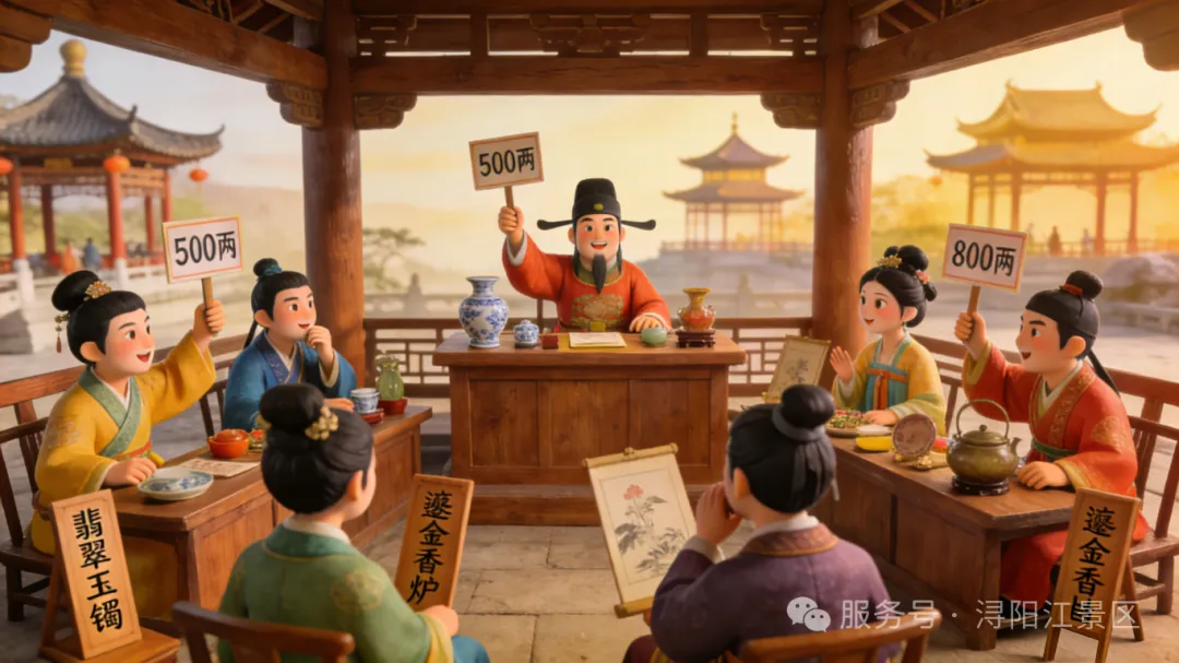 活动规则:参与拍卖会需在主持人的介绍后,给出银票,价高者可兑换拍品。