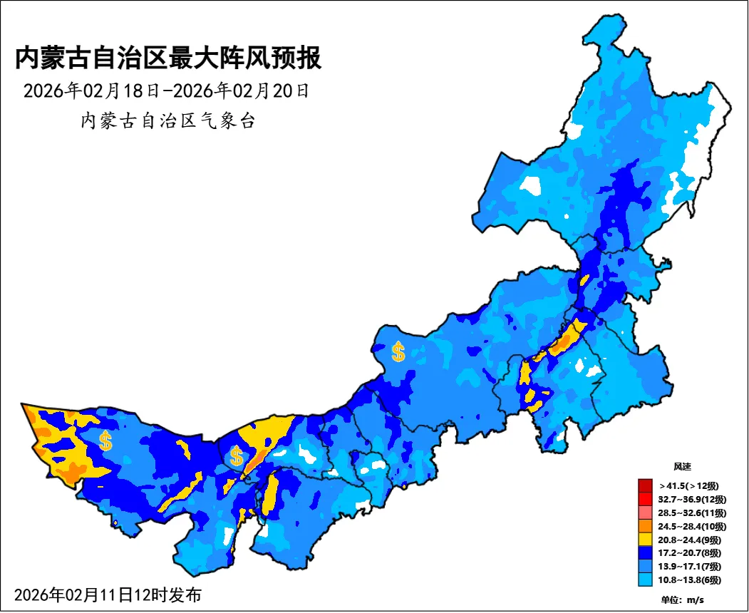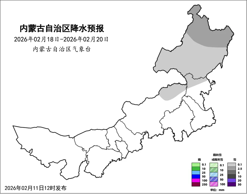 2月18日至20日,中部偏东和东北部地区有小雪,其中呼伦贝尔市北部地区有中雪,局地有大雪;全区大部地区5、6级短时7、8级偏西风或西北风,其中西部偏北和大兴安岭南段局地阵风可达9级以上,19日和20日白天中西部偏北地区有沙尘天气。