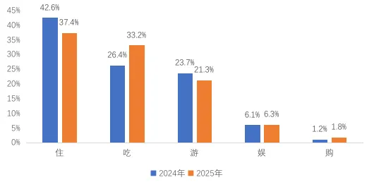 图1 2024-2025年跨省游客目的地城市消费构成变化