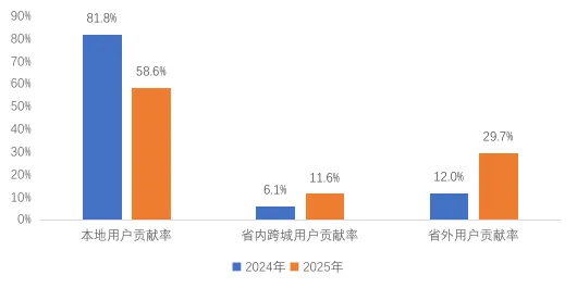 图3 2024-2025年全国本异地用户对平台餐饮交易增长贡献率