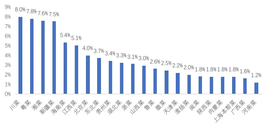 数据来源:美团研究院,统计各个省份所有跨省游客餐饮消费中的该地特色地方才订单占全部餐饮订单的比重,如湖南仅统计湘菜订单占全部订单比重