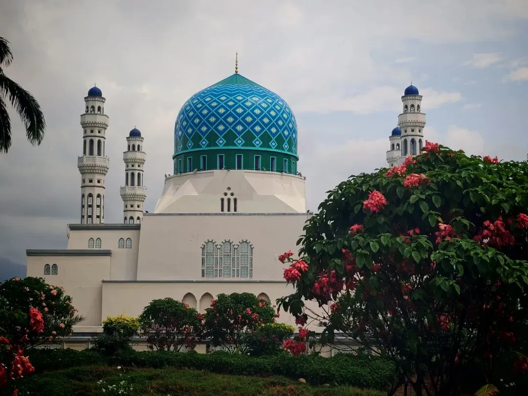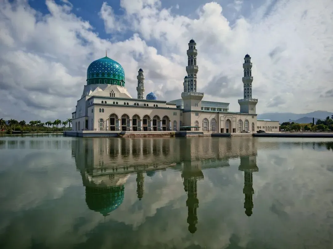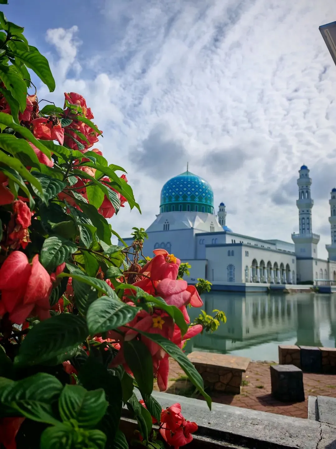 到了水上清真寺,先去买门票,5林吉特一个人,可以用微信,支付宝用不了。可以进去在水边拍风景。当天清真寺里有活动,外人不让进。