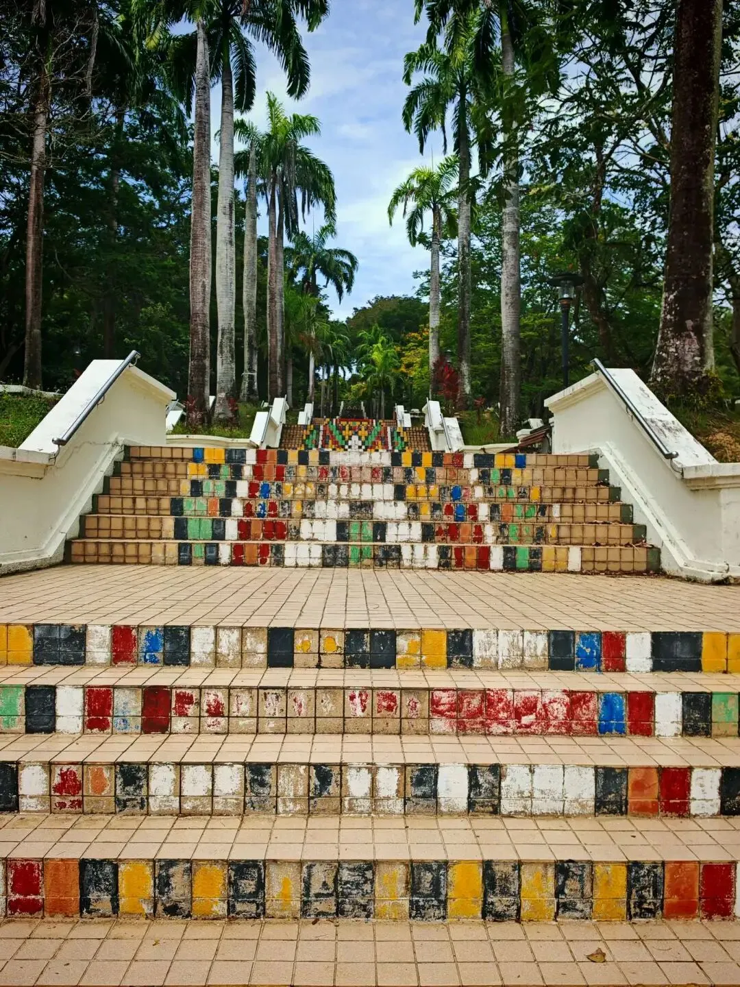 接下来准备闲逛的时候,遇到了同船一起玩泳池的小朋友一家。于是结伴同行,去寻找带有皮纳科尔图案的UMS楼梯。用图片问了一位扫落叶的妇人,在她的手势指路下,顺利找到了彩虹楼梯!