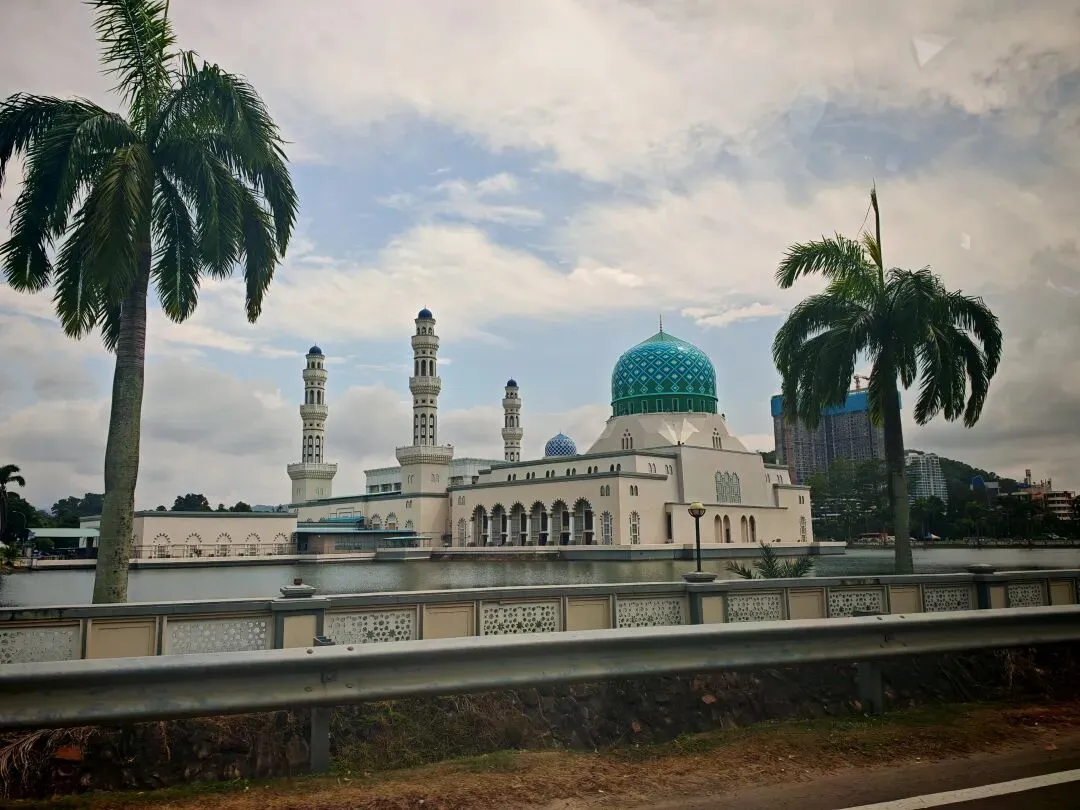 天气有点热,在便利店买了水,逛了一会中央市场,吃了椰子冰淇淋,娃就不想逛了。于是准备去下一站水上清真寺(沙巴市立清真寺)。在高德地图上打了一辆车,这里显示的是Grab,需要先预支付车费,多退少补,我用的是支付宝预付。响应速度挺快,一两分钟就有司机接单了。