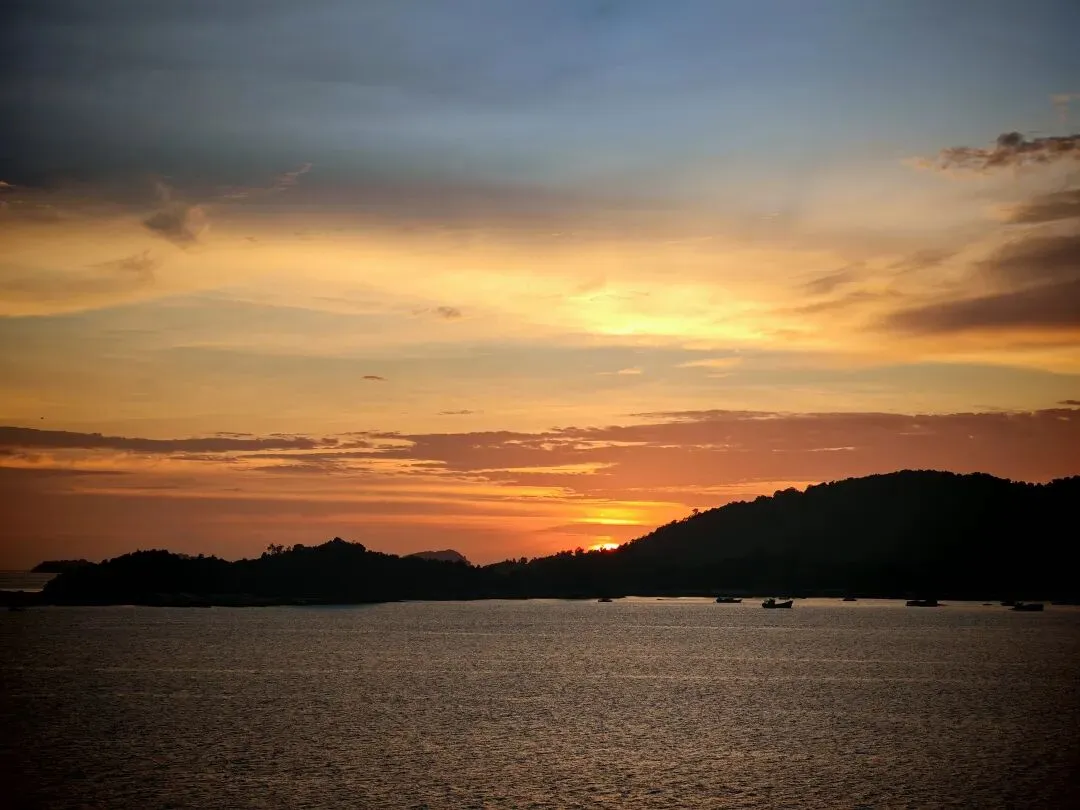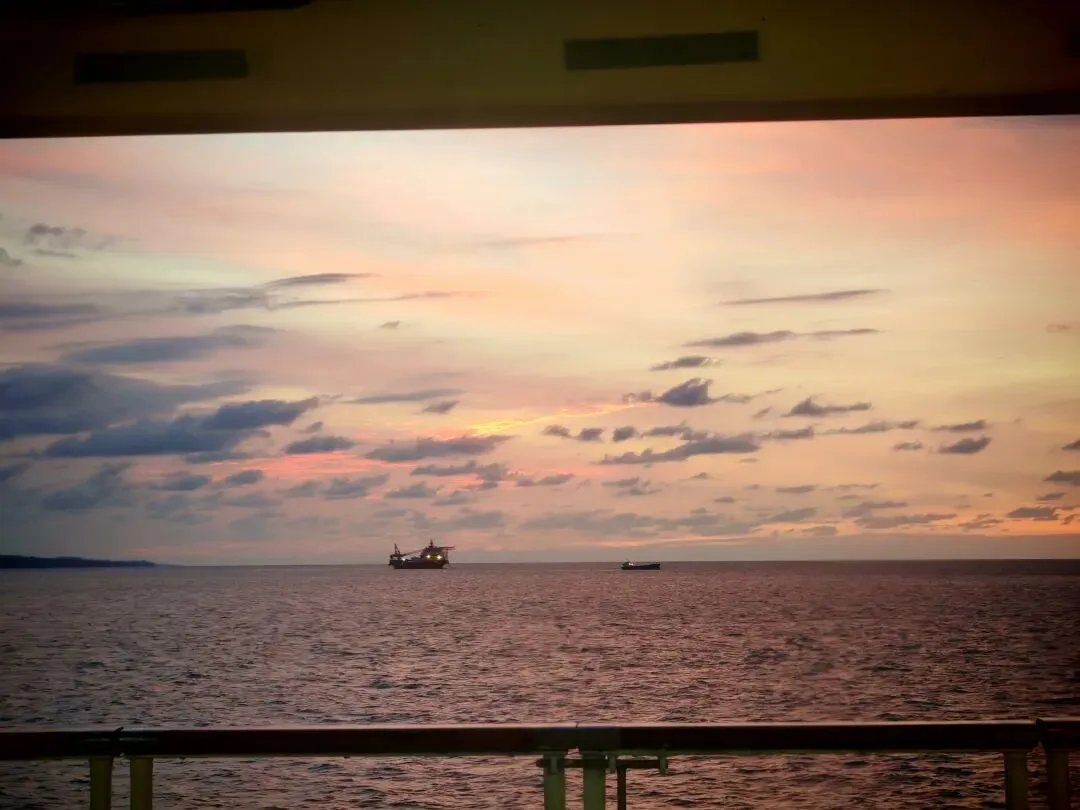 傍晚看到了美丽的晚霞,在美丽的霞光中慢慢驶离文莱。