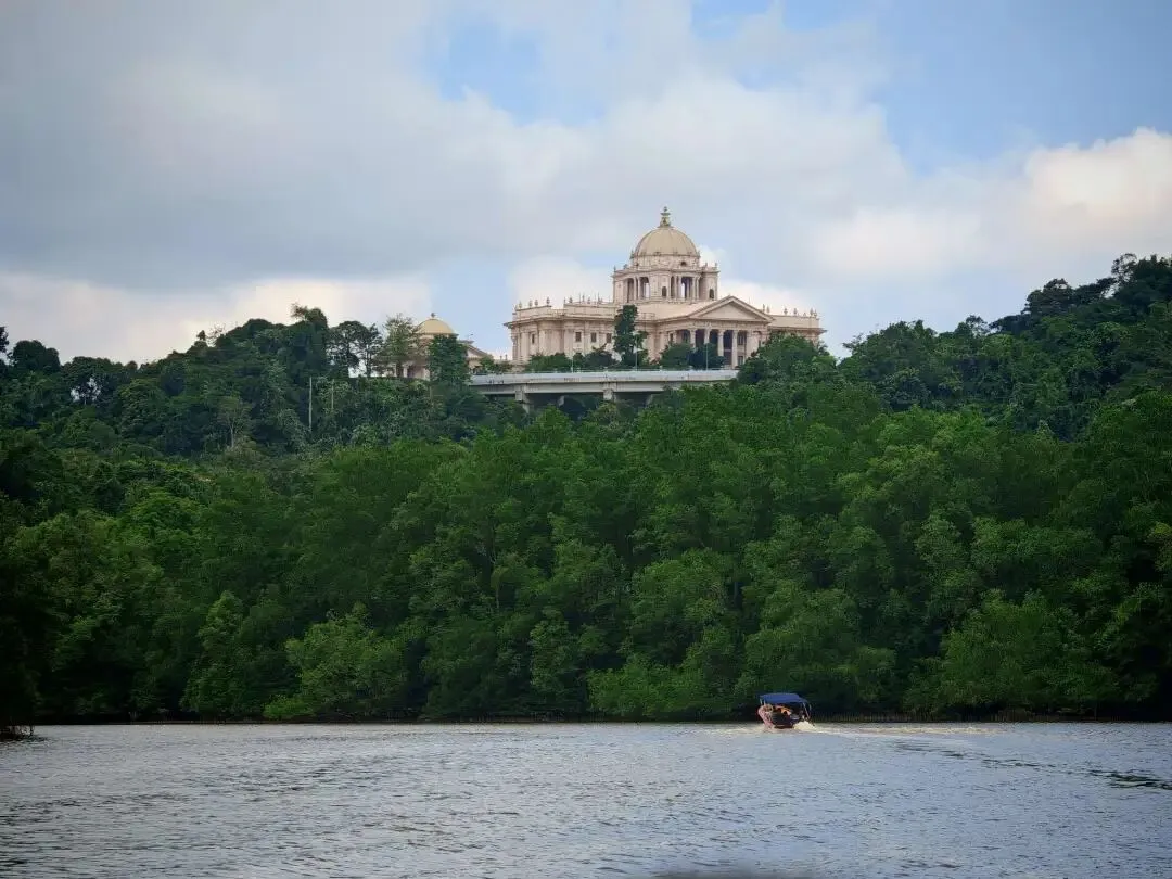 先去找长鼻猴和鳄鱼。快船在文莱河上疾驰,向红树林驶去。路上还看到了皇宫。今天运气还算不错,虽然没看到鳄鱼,但我们看到了好几处长鼻猴!并且快船开起来特别凉快,把炎热一扫而光!