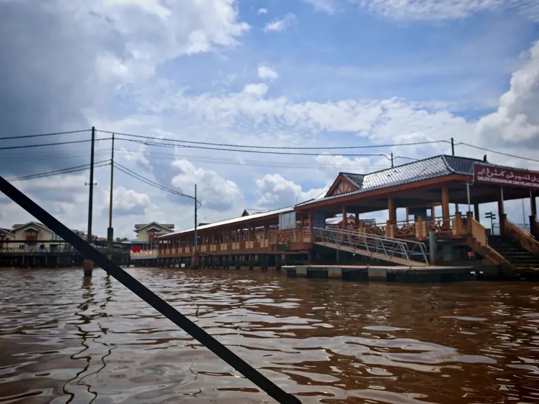 这站是我和娃最期待的。我们没有在包车中心买船票(35文莱币一个人),而是到现场砍价的。现场人员说是15文莱币一个人,我们砍到了10文莱币一个人(要付现金)。我们六个人一船,穿上救生衣就出发了。