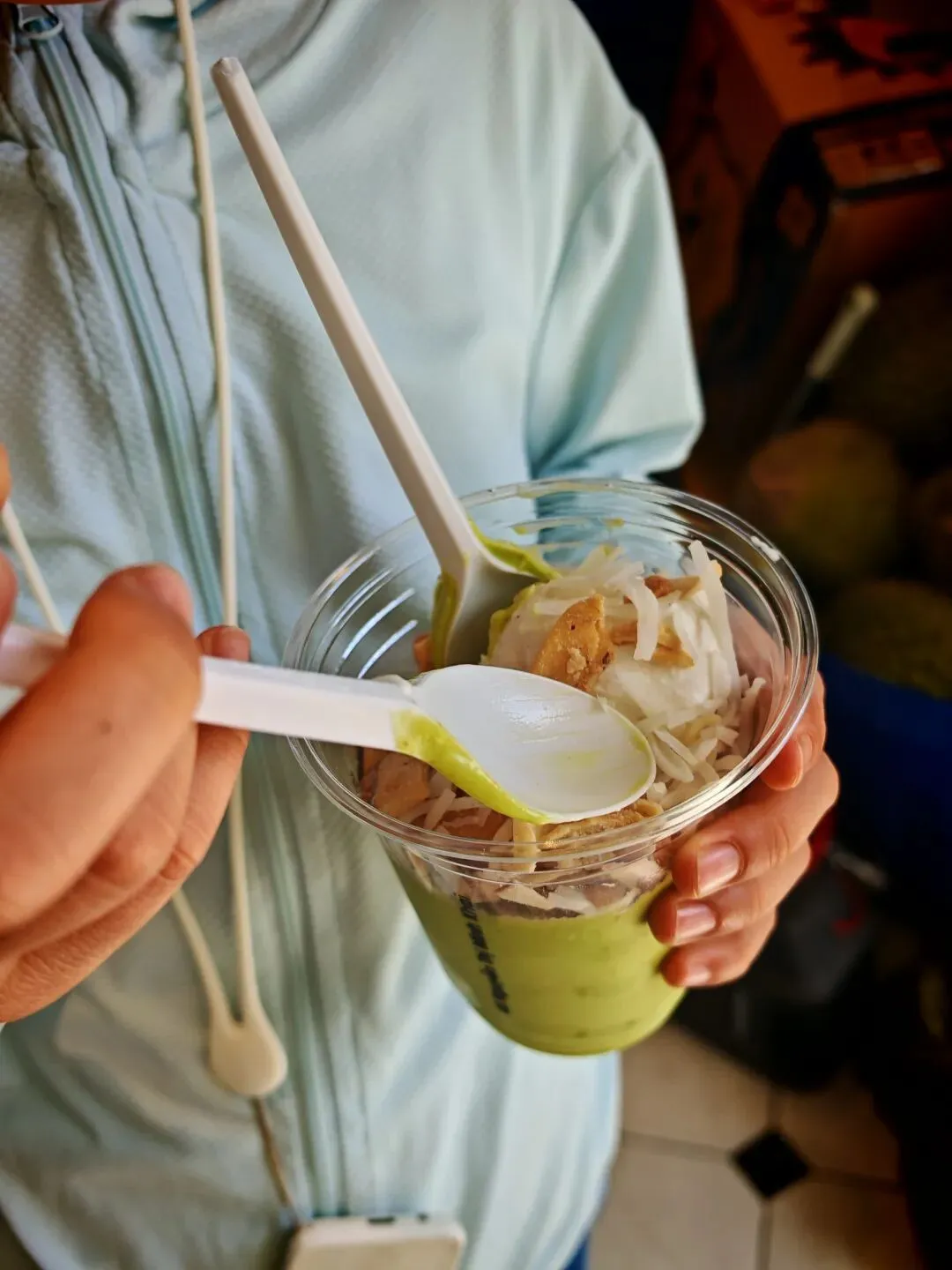 打开高德地图一路导航,很顺利就走到了。途中看到一家牛油果冰淇淋店,进去买了牛油果冰淇淋,里面不光有牛油果还有椰子脆片,很好吃。