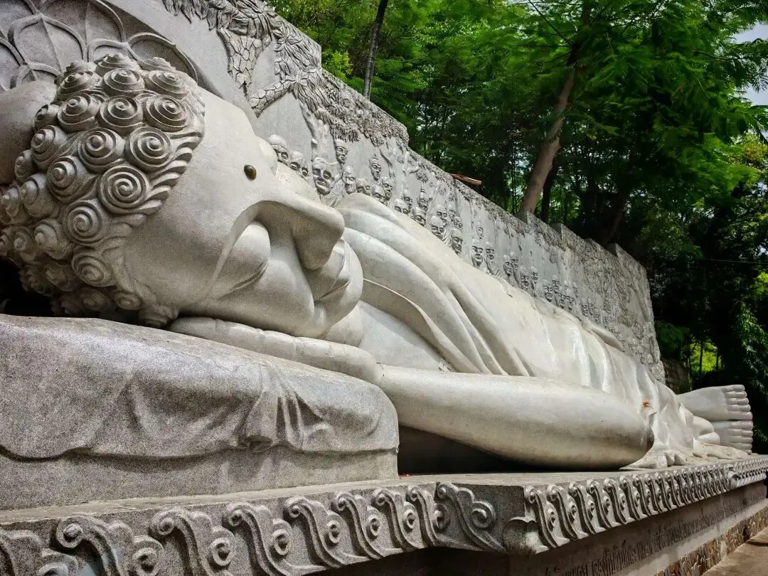 继续跟着导航走了十来分钟就到了。看了24米高的坐佛还有卧佛。离开前买了芒果吃。接着打车去第三站。