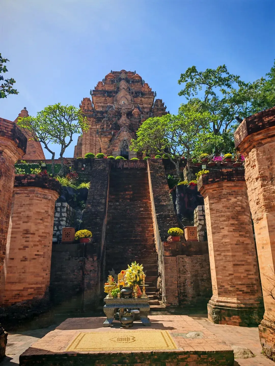 高德打车挺好用的,这里依旧是Grab,预付车费叫车。花了18元人民币就到占婆塔了。下车门口买票,3万盾一个人。进门门票自动回收。