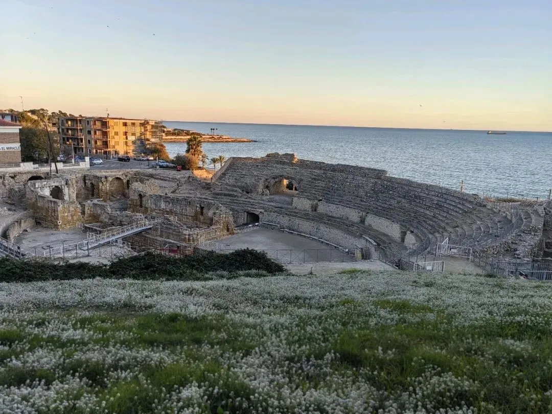 塔拉戈纳是古罗马时期伊比利亚半岛上最重要的城市,拥有2000多年的历史,被联合国教科文组织列为世界文化遗产城市。古罗马时期的塔拉戈纳兴建了伊比利亚半岛最大的斗兽场,又叫古罗马圆形剧场。我们登上古城墙,俯瞰古罗马圆形剧场,耳旁仿佛响起虎啸狮吼以及人声鼎沸。周边坡地上生长着成片的白色小花,像是无声地祭奠着它曾经的辉煌。远眺海水波光粼粼,塔拉戈纳千年的历史在地中海湛蓝的海水映衬下更加熠熠生辉。