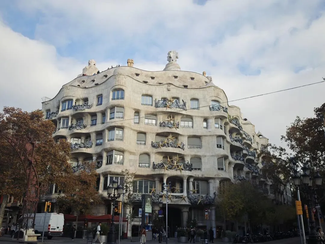 我们首先去感恩大道参观高迪设计的米拉之家。行走在感恩大道上,只见这里密集着许多现代建筑杰作,而高迪设计的米拉之家和巴特罗之家,更是这些建筑的典范。米拉之家和巴特罗之家均被列入联合国教科文组织世界遗产名录。米拉之家那波浪形的造型让我们为高迪那天马行空的设计而赞叹,我们隔着马路将它的全景收入相册。